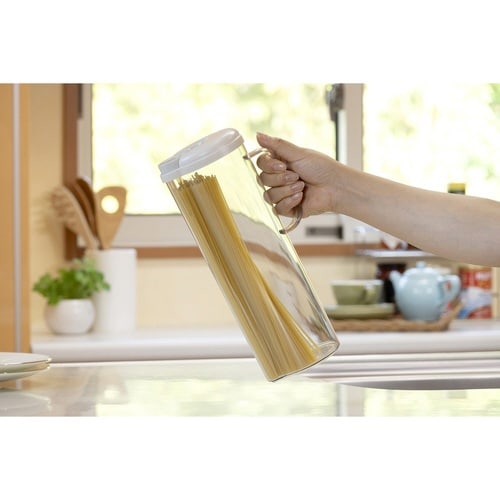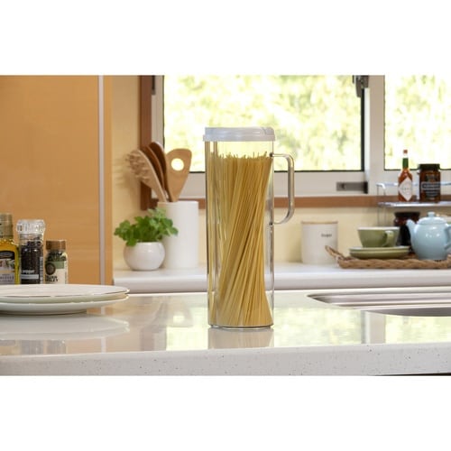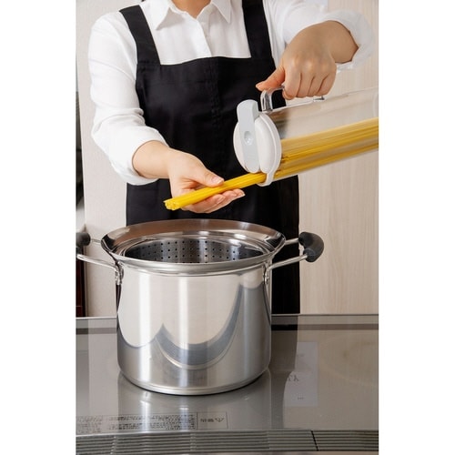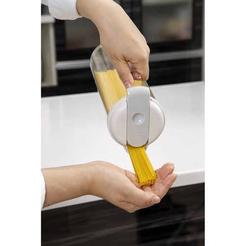 振り出すと、1人分(約100g)のパスタが出てくるプラスチック製パスタストッカーです。 約1.4kgのパスタがしっかり保存できます。 |