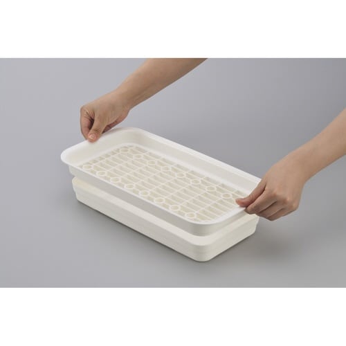 乾かしにくい容器を素早く水切り 狭いスペースにも置けるスリムサイズ パーツは簡単に分解可能 ポールの位置はレイアウト自由 コンパクトに収納 |