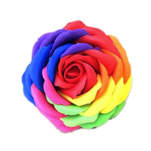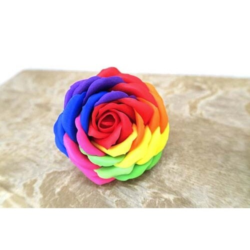 華やかな色合いが目を引くレインボーローズです。 ソープの優しい香りに癒されます。 大輪のバラを飾ることで、空間がより上品な雰囲気になります。 |