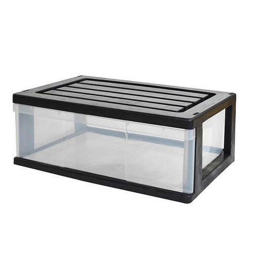 ストッパーがなく引出しは抜き出せます。丈夫なポリプロピレン製で、汚れても水拭きできて衛生的です。しまったものをすぐに見つけられるクリアタイプです。