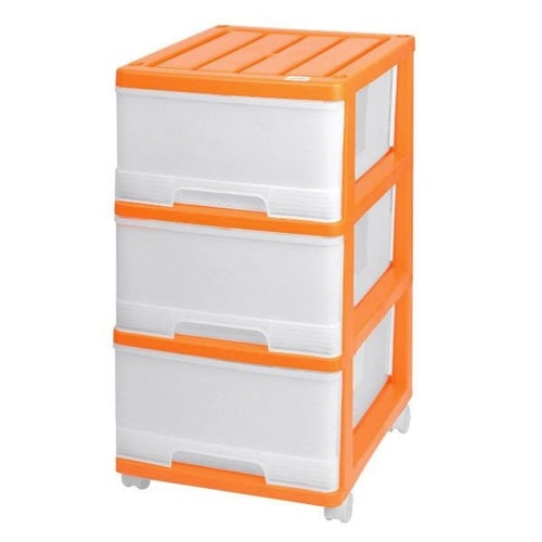 マックスジャパン 収納ケース 深型 3段 引き出し カラフルカラー キャスター付き プラスチック製 オレンジ 9334-9628