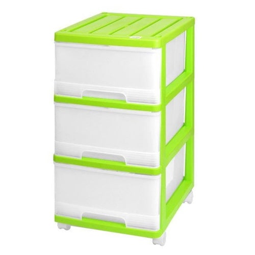 収納ケース 深型 3段 引き出し カラフルカラー キャスター付き プラスチック製 グリーン