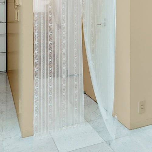 階段や廊下に取り付けるだけで外からの冷気をガードします。 天井から床まで覆える約225cmのロングタイプです。 突っ張り棒に引っ掛けるだけの簡単設置です。 のれんタイプで出入りもスムーズです。 |