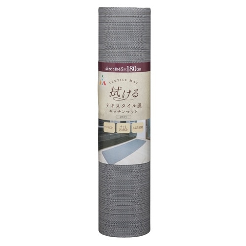 キッチンマット 拭ける テキスタイル風キッチンマット 45×180cm グレー