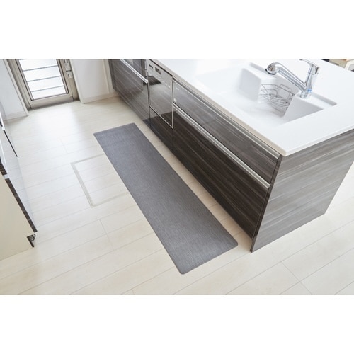 水に強く、汚れてもサッと拭けるキッチンマットです。 お洗濯の手間が不要で、お手入れが簡単です。 表面は高級感のある織りのような仕上がりです。 |