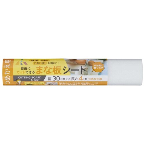自由にカットできる「まな板シート」 30cm×4mの詰め替え用です。 本体の箱に詰め替えてお使いいただけます。 カットした食材の移動もしやすい厚手タイプです。 |