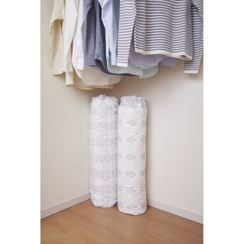 掃除機いらずの布団圧縮袋『大きな布団用』です。 収納場所に合わせて圧縮方法を変えられます。 表面には収納していてもおしゃれな柄がプリントされています。 裏面は透明で中身が分かり安心です。 |