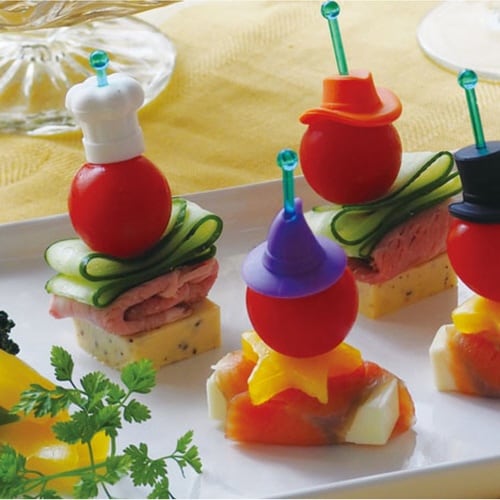 まるで帽子をかぶっているかのように見えるピックのセット 食卓を華やかに彩る たこ焼きもキュートに大変身 お弁当などの彩りにも |