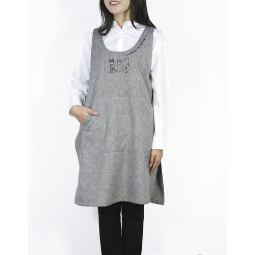 両サイドはフルオープンして、リボンで調整可能なエプロンです。 胸元にはシンプルながらも存在感のあるネコの刺繍入りです。 天然素材ならではのナチュラルな雰囲気を楽しめます。 |