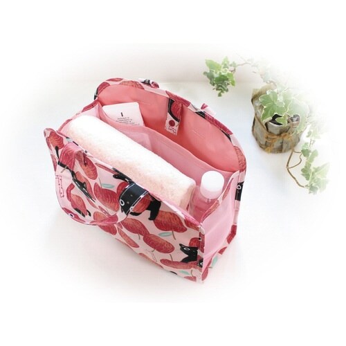 温泉グッズをコンパクトにまとめて持ち運べる、黒ネコたまちゃんの温泉バッグです。 底とマチが通気性のいいメッシュ素材です。 内側は、ドットボタンどめになっています。 |