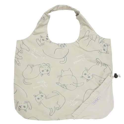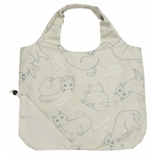 エコバッグ 巾着収納 ネコ 持ち運び ベージュ