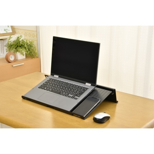 ノートパソコン スタンド 折りたたみ式 スマホスタンド パソコンスタンド デスク 在宅 ブラック 9335-2970