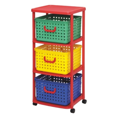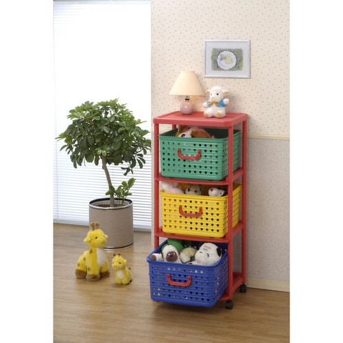 バスケットラック キッズ収納 キャスター付き 3段 カラフル