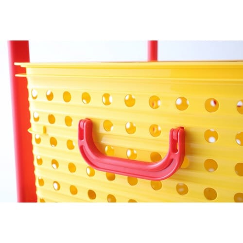 3つのカラフルなバスケットがお子様のお片付けの習慣付けを手助けします。 バスケットは取っ手付なので、引き出しやすく持ち運びもしやすいです。 天板には大きなおもちゃやランドセルの収納ができます。 |