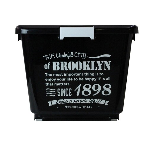 キャスター付きで物を入れたまま移動ができる収納ボックスです。 ブルックリンスタイルのロゴがスタイリッシュなデザインです。 中身が透けず、フタつきだからサッと隠せて便利です。 |