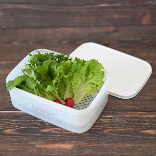 EMBALANCE 保存容器 2.1L レクタングルコンテナ 角型 ザル付き