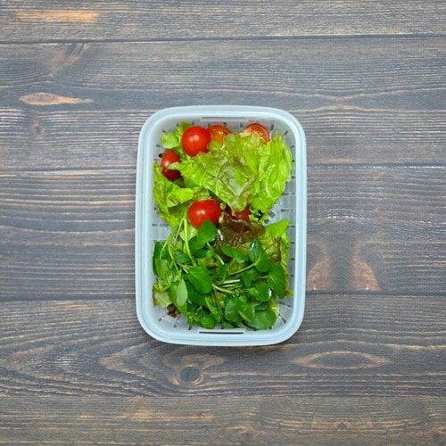 ザル付きで深めの2.1L角型保存容器です。 カット野菜の水をきりながら保存したり、余った豆腐を水につけたまま保存などに便利です。 |