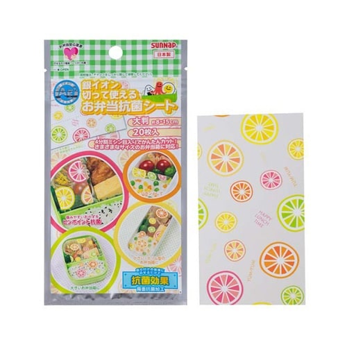 おかずやごはんの上にのせるだけで簡単に抗菌できる大判シートです。 銀イオン抗菌剤により、菌の繁殖を抑える両面抗菌加工です。 |