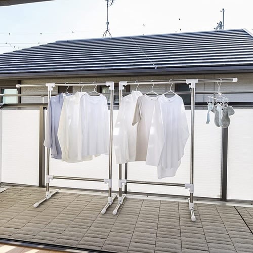 奥行きスリムで狭いベランダに最適です。 布団が横から通し干しができてラクラクです。 省スペースなスリム設計で部屋干しにも最適です。 脚部スライド設計でコンパクトに収納ができます。 |