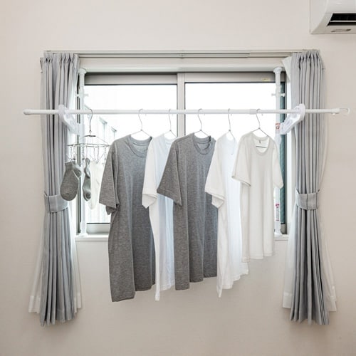 日当たりの良い窓スペースを有効活用できるつっぱり式窓枠物干しです。 工具不要で簡単に取り付けられます。 |