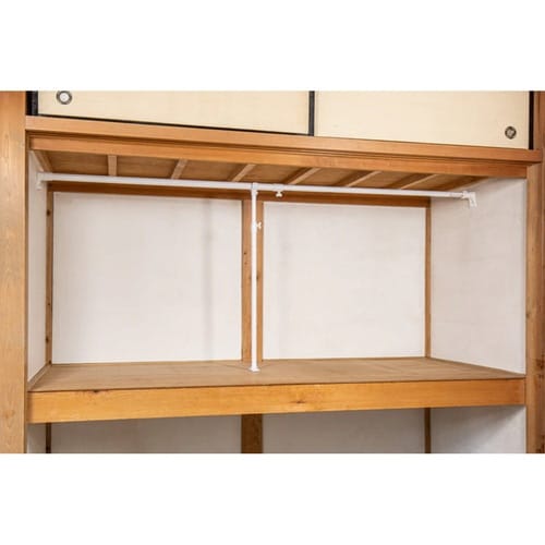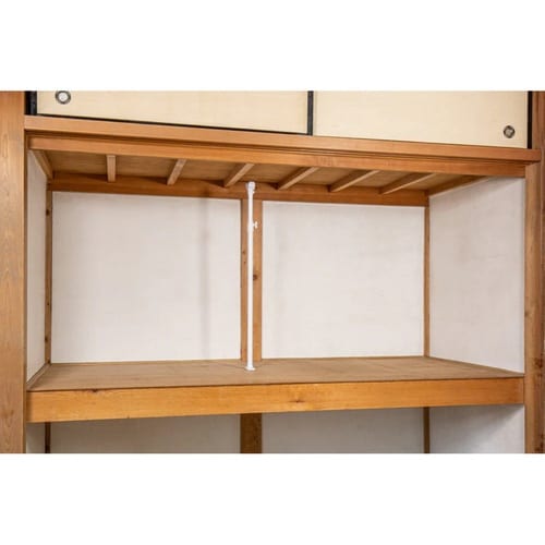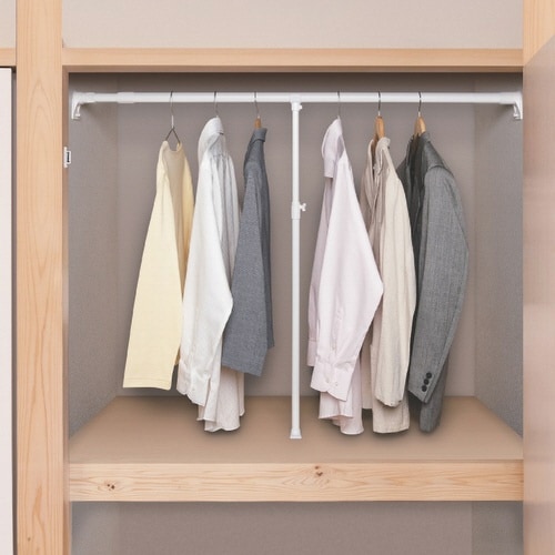 突っ張り棒を下から支えるサポートポール【S】です。 高さ調節できる伸縮式です。 ポール受け部にすべり止め防止シートが付いています。 |