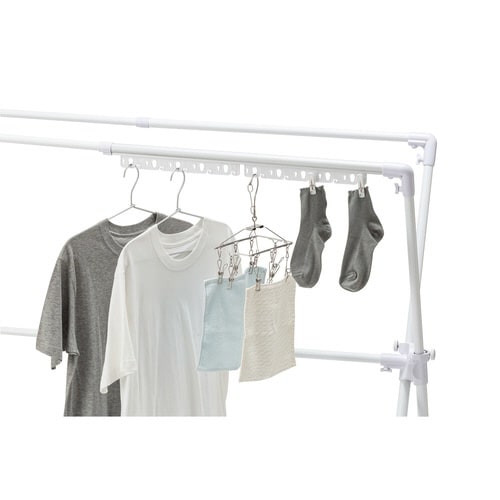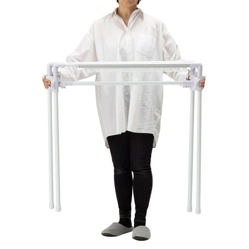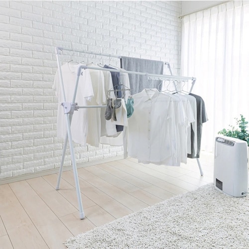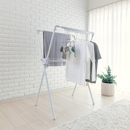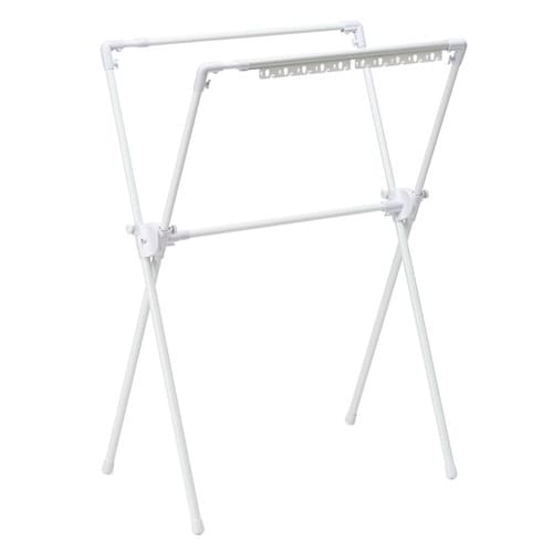 シンプルで使いやすいX型物干しスタンドです。 お部屋に馴染みやすいホワイトカラーです。 幅約98から148cm、高さ約85から125cmまで調整可能で、洗濯物の量に合わせて変えられます。 |