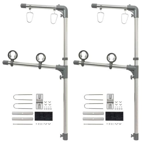 ベランダに設置できる物干しスタンドです。 格子手すりへ取付けできます。 2段式で洗濯物をたくさん干せます。 下段は竿を掛けたまま収納することが可能です。 |