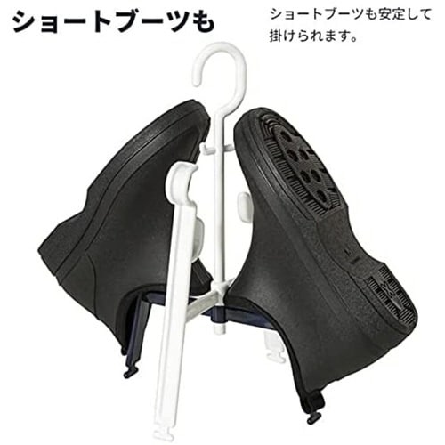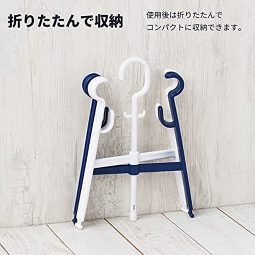 シューズ専用のスタンド付きで、玄関などに立て掛けて干すことができます。 靴ひもやシューズブラシなどが掛けられるフック付きです。 使用しないときはたたんでコンパクトに収納できます。 |