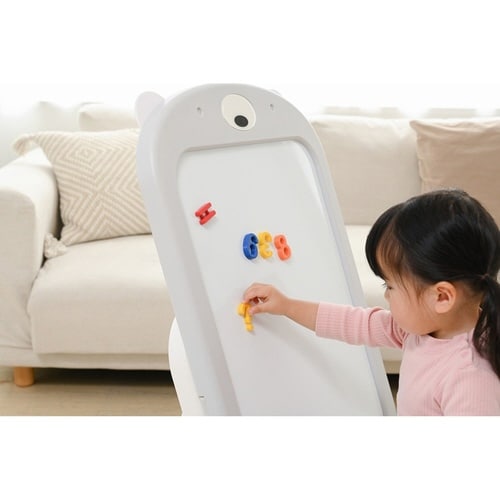 付属の水彩ペンやマグネットで楽しく遊べるおえかきボードです。 優しい雰囲気が引き立つカラーとデザインです。 スライド式でお子様の身長に合わせて高さを調節できます。 |