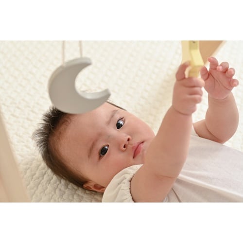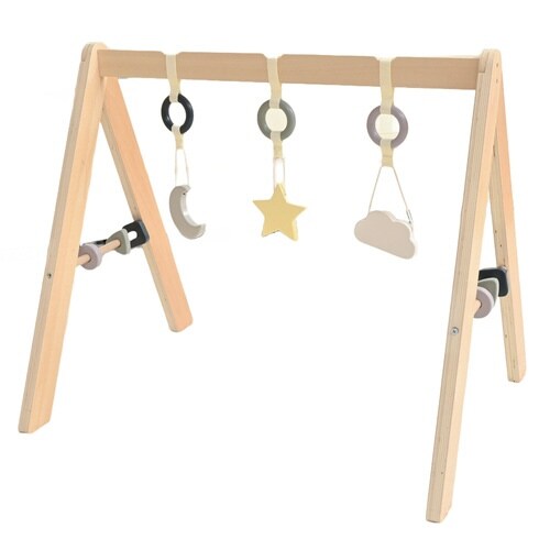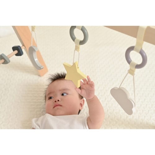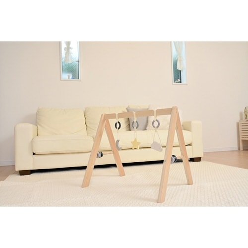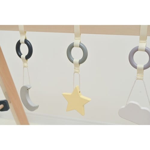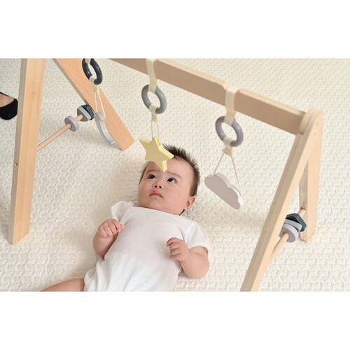 木のぬくもりを感じる、よぞらがモチーフのベビージム ゆらゆら揺れる天然木のぶら下がりトイ お誕生からすぐに使える ドライバー1本で組み立て簡単 場所を問わず、省スペースでセッティングできる |