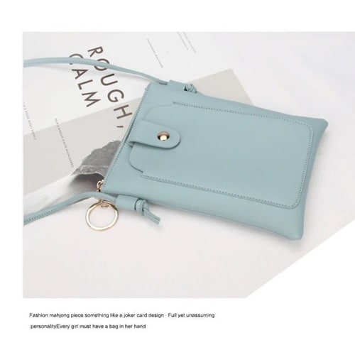 スマホショルダー スマホポシェット チャック ポケット ライトブルー