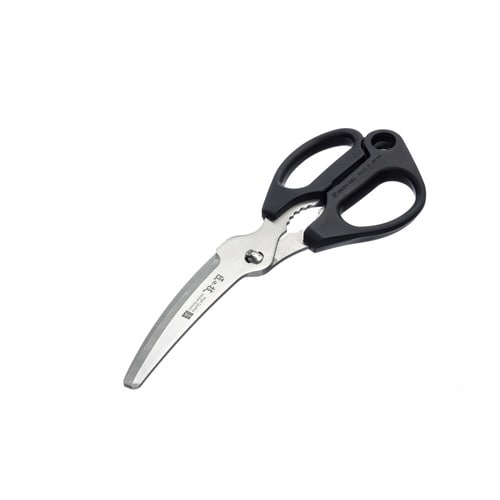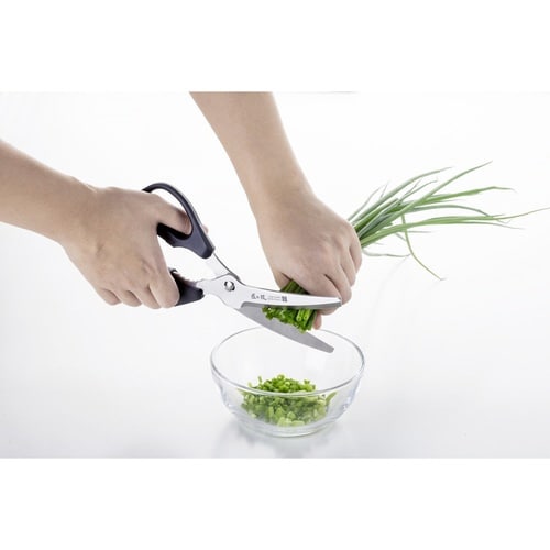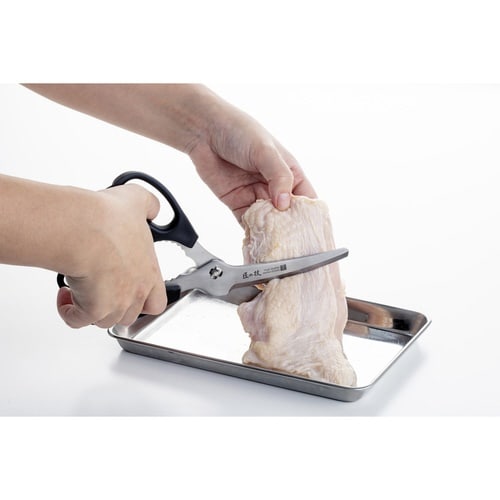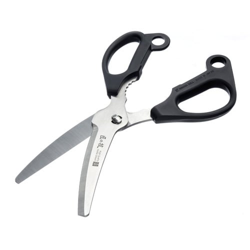 分厚く広い刃でスパッと切れる使い勝手のよいキッチンバサミです。これ1本で料理の下ごしらえができます。 長さの違うカーブ刃により「引き切り効果」が生じるので、さまざまな食材をスムーズに切れます。 |