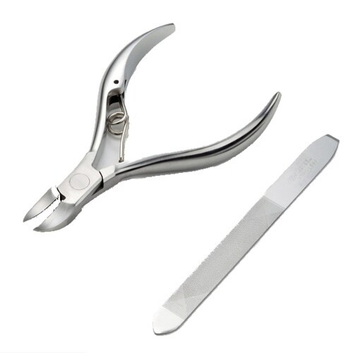 細かい作業ができ、バネの反発力を利用して軽い力でも一気に切れるニッパータイプの爪切りとヤスリのセットです。 ヤスリは三段目立てで爪のかかりが良く、ネイルケアに最適です。 |