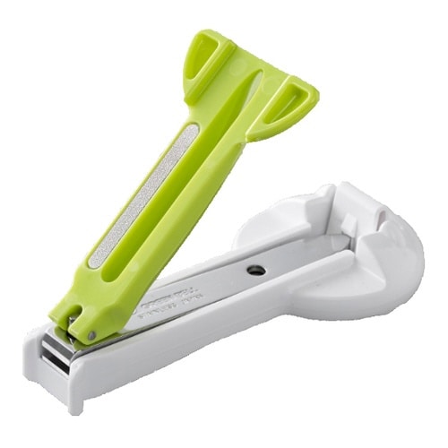 ステンレス製の深爪防止ツメキリです。 深爪を防止する安全ガード付きで、丁度いい長さで切ることができます。 テコの裏にヤスリ付きです。 ツメの飛散を軽減するキャッチャーケース付きです。 |
