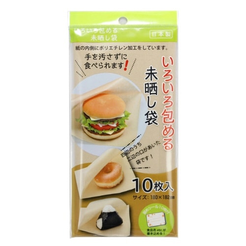 四辺のうち二辺の口が開いている未晒し袋です。 紙の内側にポリエチレン加工をしているので、油分・水分に強いです。 食品名などが書き込める便利な留めシール付きです。 手を汚さず食べられるので、衛生的です。 |
