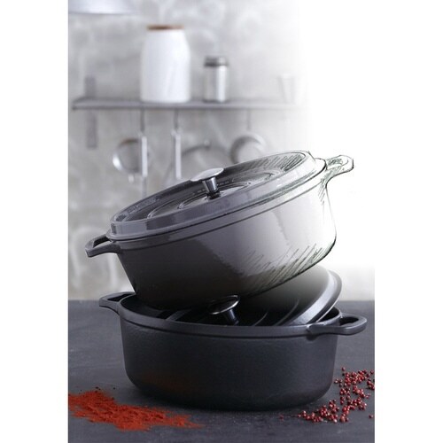INVICTA キャセロール 22cm ラウンド IH対応 両手鍋 ブラック
