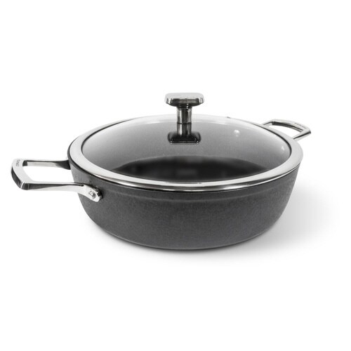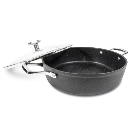 比較的大人数の調理に適した大容量の28cmサイズです。 こびりつきにくさ・耐久性を追求した3層コーティングを施しました。 少ない油でヘルシー調理ができ、お手入れも簡単です。 |