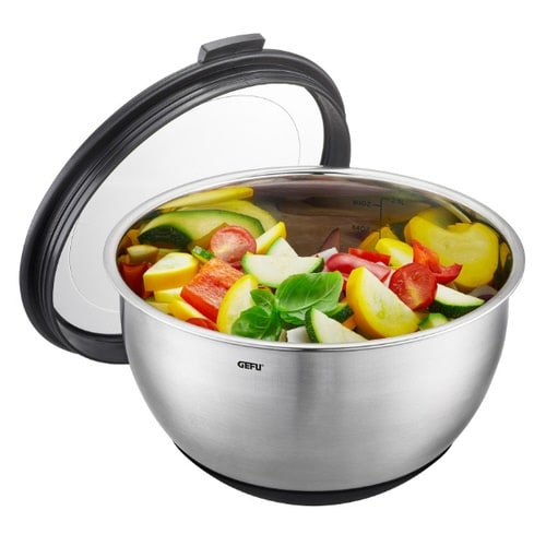 調理から保存までできる、多機能なステンレスボウルです。 密閉性の高い蓋で、保存時のニオイや液漏れを防ぎます。 調理に便利なメモリ付きです。 |