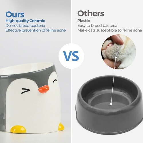 傾斜&高さがある首に負担がかからないフードボウルです。 広口でひげが当たらず快適に食事ができます。 |