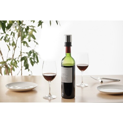 ワインボトル内の空気を抜き真空状態に近づけ酸化を抑えます。 冷蔵庫でも保存できるコンパクトサイズです。 栓を開けた次の日も香り豊かなワインが楽しめます。 |