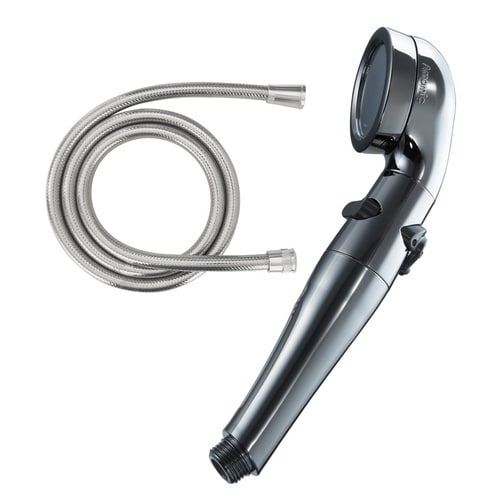 シルクのような優しい肌あたりの節水シャワーヘッド、ホース付きです。 シャワーの勢いはそのまま、最大60%の節水効果を発揮します。 ヘッド背面のスイッチでソフト水流とハード水流を切り替え可能です。 |