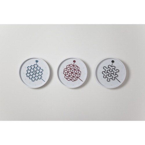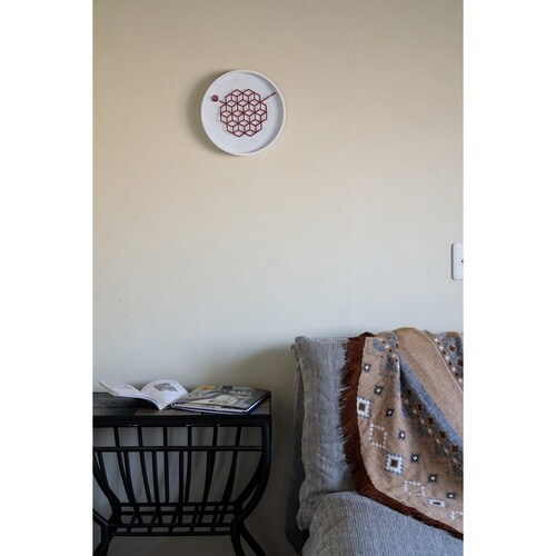 時間と共に変わる幾何学模様、様々な柄を作り出す楽しい掛け時計です。 カチコチ音を立てないスイープ式のムーブメントを使用しています。 |