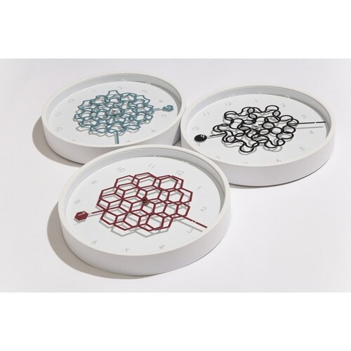 時間と共に変わる幾何学模様、様々な柄を作り出す楽しい掛け時計です。 カチコチ音を立てないスイープ式のムーブメントを使用しています。 |