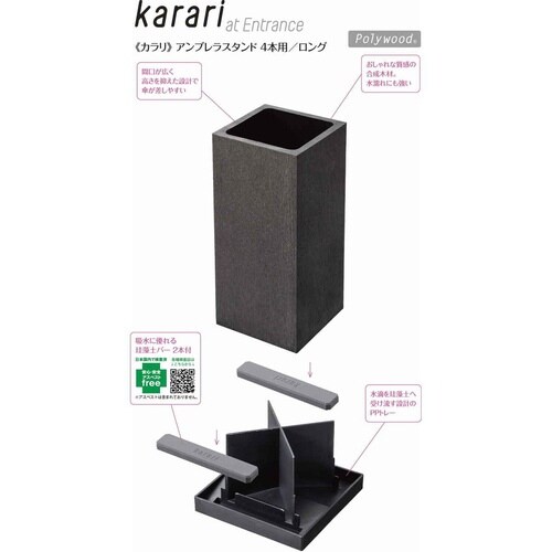karari 傘立て 珪藻土 4本用 ロング グレー