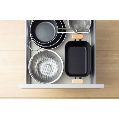 保温力の高い鉄鋳物は油の温度が下がりにくく、揚げ物がカラッと仕上がります。 コンパクトな角型なので少ない油で揚げることができ経済的です。 エビフライやアスパラなど長い食材も揚げやすいです。 |