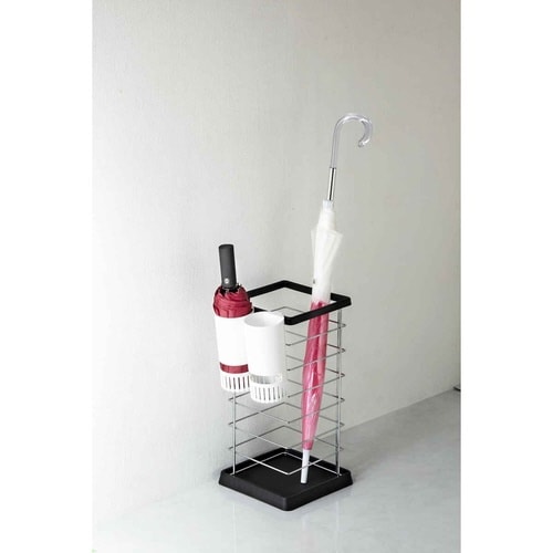 スリム設計で2個使いもできます。 既存の傘立てに掛けるだけで折りたたみ傘置き場が作れます。 傘立ての外側に取り付けできるので、収納スペースが広がります。 靴箱の扉にもフックできます(1.8cm以下)。 |