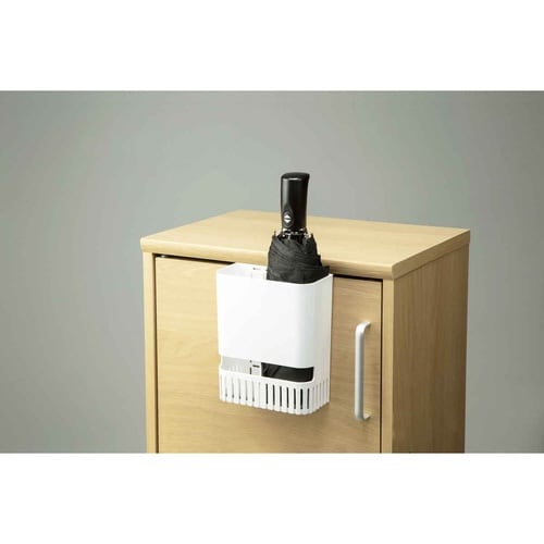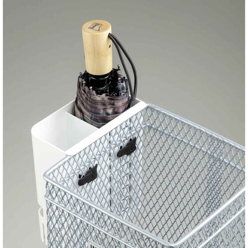 仕切り付きで、折りたたみ傘2本を収納できます。 既存の傘立てに掛けるだけで折りたたみ傘置き場が作れます。 傘立ての外側に取り付けできるので、収納スペースが広がります。 |
