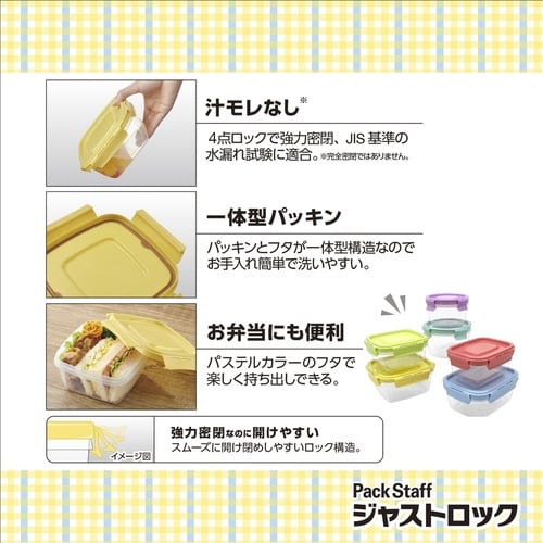 幅広く使えるカラフルな保存容器Lサイズです。 正方形は約640ml、長方形は約600mlの容量です。 強力密閉で汁物を入れても安心です。 フタとパッキンが一体型構造のため、洗いやすく清潔に保てます。 |