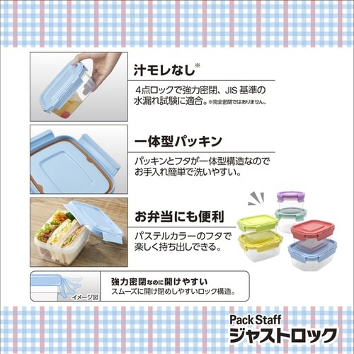 幅広く使えるカラフルな保存容器Lサイズです。 正方形は約640ml、長方形は約600mlの容量です。 強力密閉で汁物を入れても安心です。 フタとパッキンが一体型構造のため、洗いやすく清潔に保てます。 |