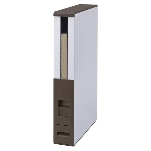 キッチンの隙間にすっきり置けるスリムタイプの計量米びつです。 サビや腐食に強いスチール製です。 お米の残量が一目で分かる大型残量窓が付いています。 レバーを押すだけで簡単に1合が計量できます。 |